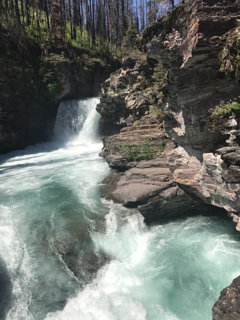 We stopped for a while at each of the falls and ate lunch at Virginia falls. The force of the spray soaked anyone who came near it and we were happy to cool off in the 90 degree heat.