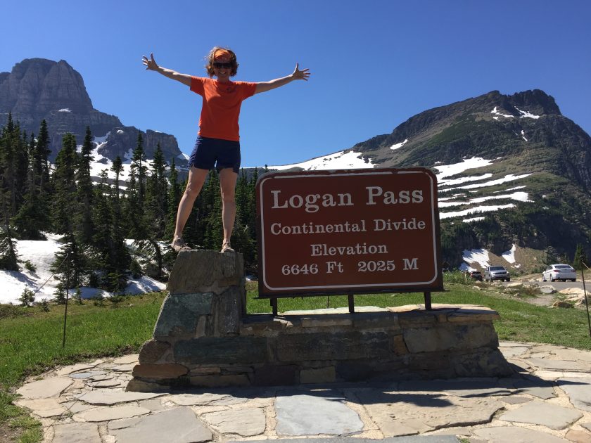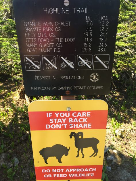 NEXT! We headed up the road to Logan pass to take a mandatory group photo next to the Continental Divide sign and see how the snow was melting. The Scouts had a snowball fight and climbed around on the piles of snow by the visitor center. We bumped into a couple from Australia that said that the Highline and Garden Wall had opened TODAY!! “Whaaaat?!” We jumped at the opportunity to squeeze in one more hike and hit the trail that we had heard so much about.
