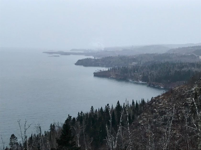 From there my hiking buddy and I zipped up to Tofte, chatting the whole way stopping for lunch, no schedule or agenda in mind.  So relaxing!  On the way, I saw the sign for Palisade Head.  I have been to most of the MN State Parks on the North shore but managed to miss this beauty nestled on the edge of Tettegouche State Park.  We pulled into the lower parking lot and hiked up the hill to the cliffs.  The upper parking lot was closed for winter, but it would be great access for those with limited mobility or little ones when the weather is nice.  If you bring your little ones, rascally teenagers, or anyone else you love…hold onto them.  Cliffs people!