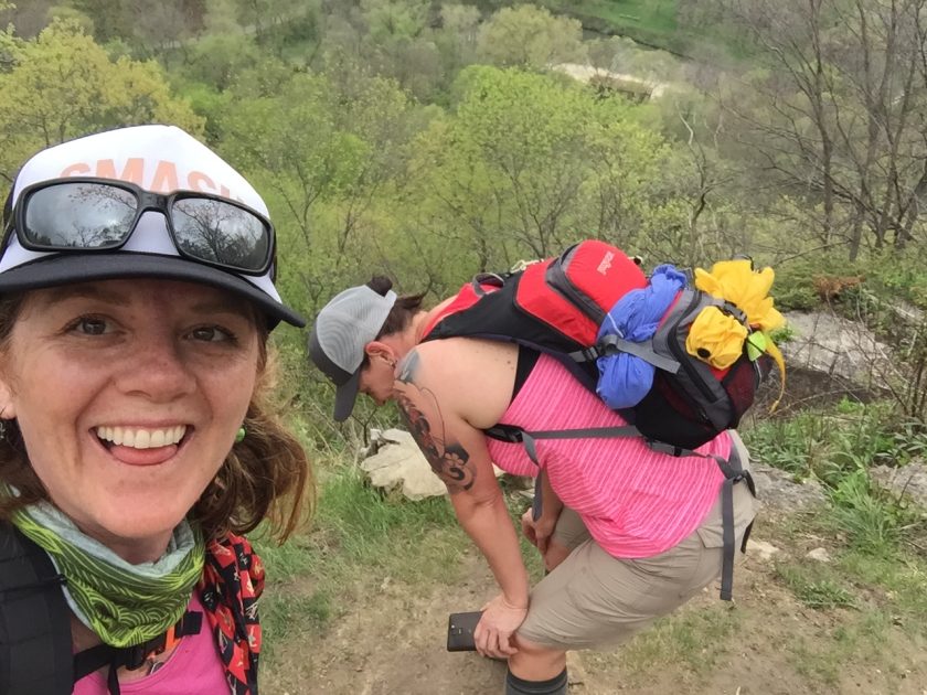 We got to Whitewater State Park  while it was still early and headed straight to the visitor  center for a map.   I hadn’t done much research on this park, and all I had heard was the claim that they have NO MOSQUITOES.   That’s a pretty steep claim in Minnesota and kind of hard to believe.   I had no idea that we would be in for some great training terrain including sheer bluffs, rooty trails and lots and lots of stairs!  We were pretty stoked when we saw the topographical map and then immediately regretted leaving our hiking poles in the car.
