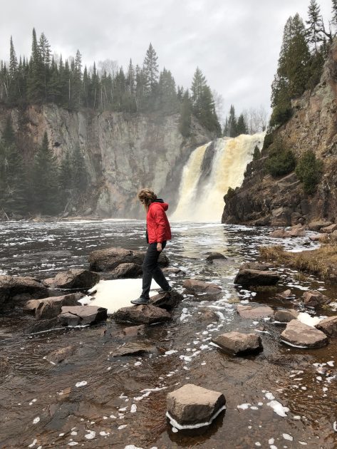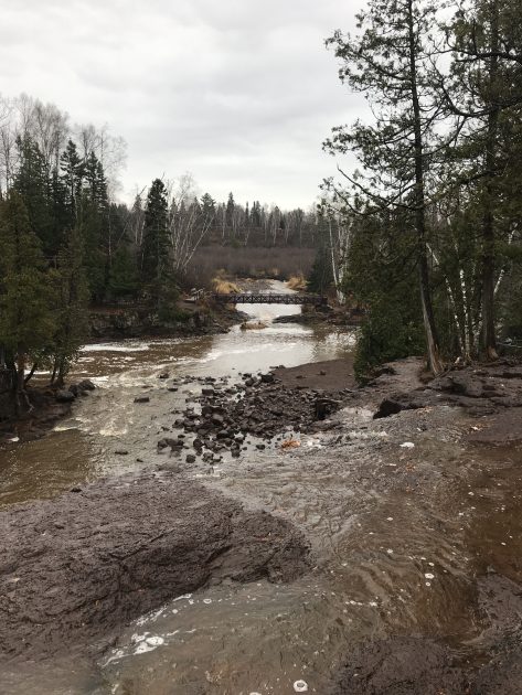 Our final stop on the North Shore was Gooseberry Falls State Park. This Park is the most visited State Park in MN and is quite wonderful for either a quick stop for a view of the falls or a whole weekend of hiking and camping. We opted for a quick little jaunt to the upper and lower falls. There were very few people in the park due to the cold drizzly weather, but we still ran in to Rod Johnson, the founder of Midwest Mountaineering. How cool is that?