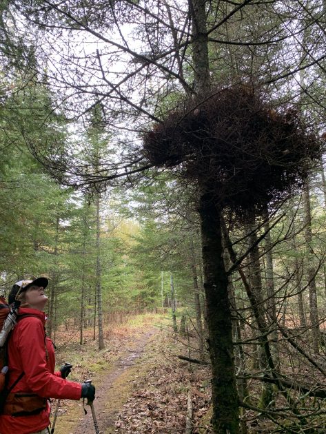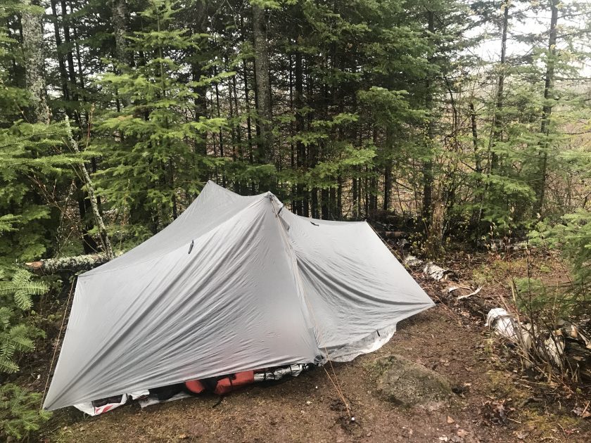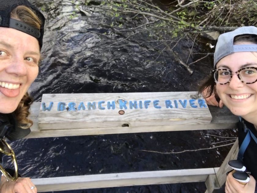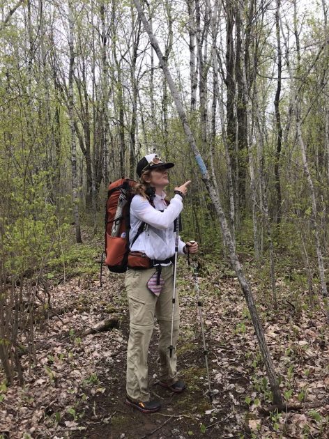 We met 2 bushcrafters at our stop for lunch at the Sucker River Campsite.   They were friendly fellas, using hatchets and saws to make pine needle beds, a fire and rigging tarps for their shelters.  We didn’t chat much, but we enjoyed watching them make camp and I gave them some filtered water before we left.  I think they might have been boiling their water over the fire, because they really seemed to appreciate it!  We only saw one tick on this trip, and it was crawling on Prank’s shoulder at lunch.  One of the Bushcrafters told us he found one stuck in his armpit…so here’s your friendly reminder to prep for ticks and check yourself on the trail.