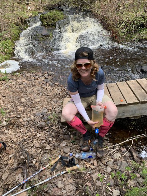 This trip marks my completion of 4 out of 6 total sections of the Superior Hiking Trail.   About a week ago, we did the Tettegouche to Two Harbors section, preceded by our SHT 100 miler!  This trip was Prank’s (her new trail name) first multi day backpacking trip.  She totally crushed it and hopes to complete a thru hike one day!  Our trip report will include the map miles as well as her pedometer miles, because we set out to experience and clean up as much of the trail as we could, visiting every spur and campsite…and were surprised to see that we hiked a total of 64.69 miles in 72 hours of mostly mud.  We can be proud of that!