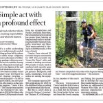 In November, I wrote about what I had learned from picking up trash on the trail. Then I was featured on my first podcast called “The Hike”! I was a little nervous but I think it turned out well. It was an honor to be able to share my SHT LASH story and you can listen to it here. Around that same time, a writer from the Star Tribune contacted me about doing a story about my trail clean up for the year (!) We did a quick phone interview and the next thing you know, the story was printed on the front cover of the Outdoor section of the paper. That was pretty cool. I certainly didn’t expect to be recognized for cleaning up trash, but both the podcast and newspaper story tell a deeper story. How we all can do BETTER when we work TOGETHER!
