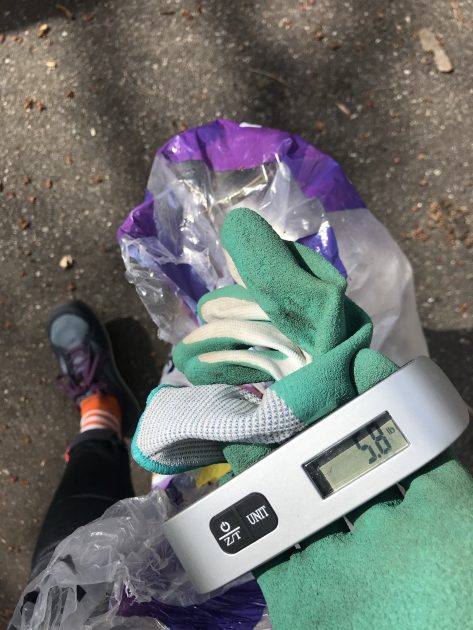 Most of the trash I picked up this year was in my neighborhood and local green spaces. Fast food packaging was the most common culprit. Later I noticed masks, gloves, disinfectant wipes, and other evidence of the virus. I wore rubber gloves, used my trash grabber and switched from reusable trash bags to packaging that I would have already thrown away.